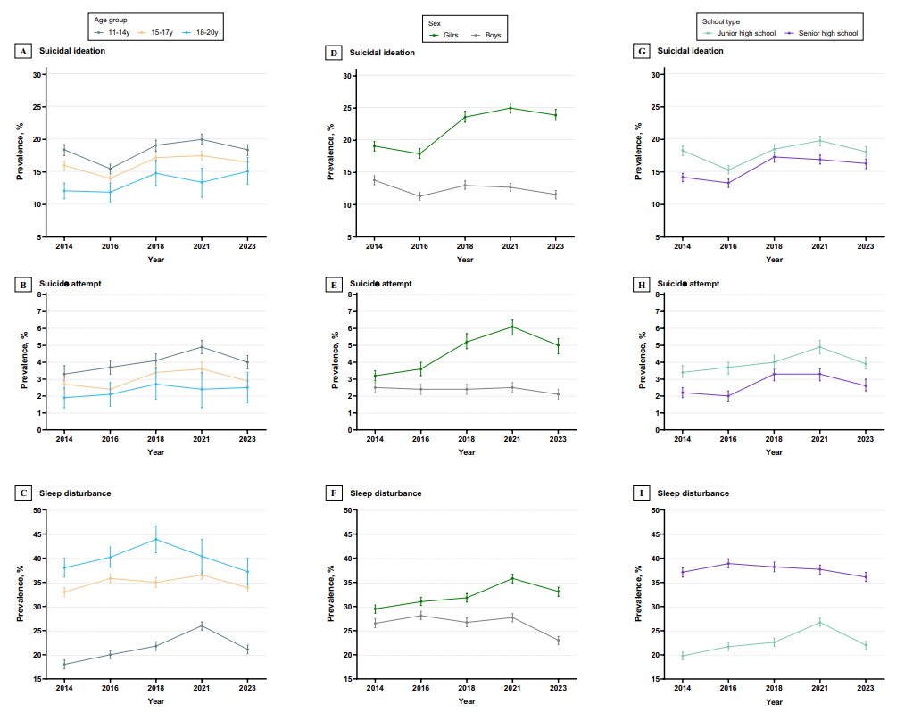 一项在广东开展的青少年健康调查(School-based Chinese Adolescents Health Survey,SCAHS)[1] 显示,约有 3% 的中学生曾经自杀未遂。研究人员分析了 5 轮(分别开展于 2014 年,2016 年,2018 年,2021 年,以及 2023 年)SCAHS 数据后得到上述结论。