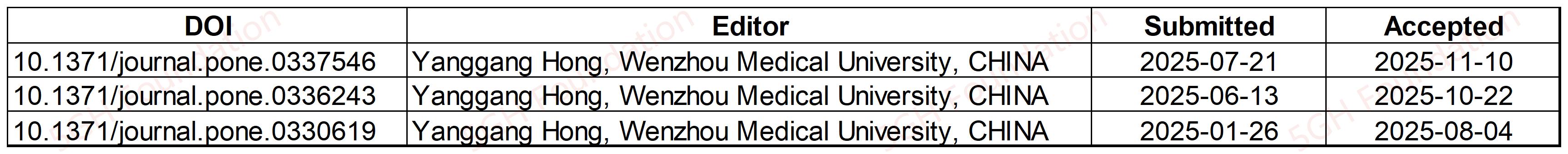 An undergraduate students (HONG Yanggang / 洪扬刚) at Wenzhou Medical University (温州医科大学) has edited three articles on an U.S. based journal "PLoS ONE".